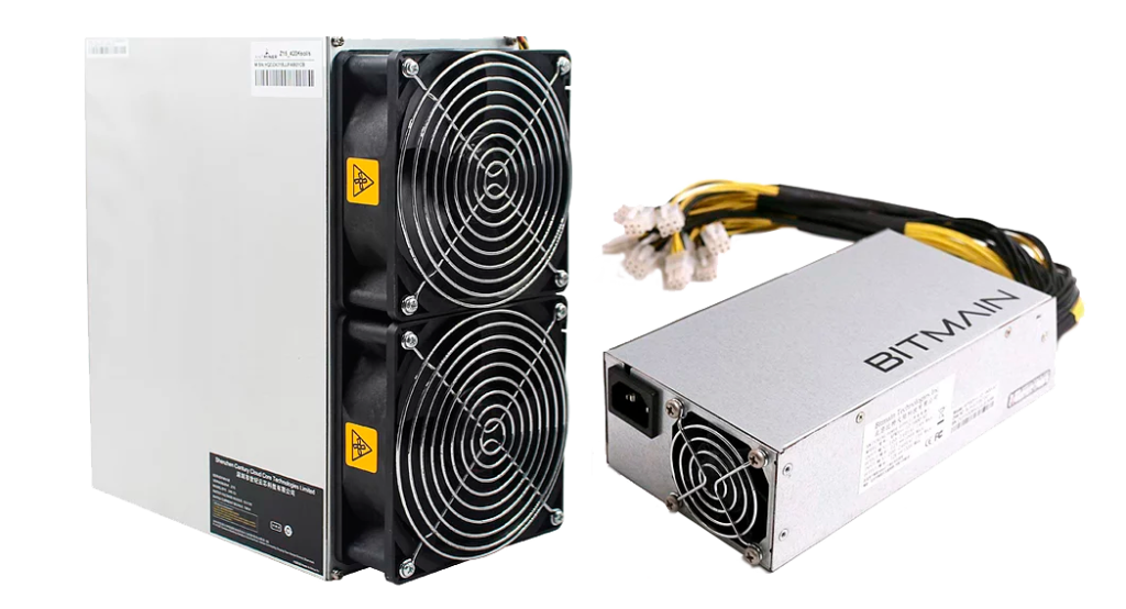 Model Antminer Z15j from Bitmain mining Equihash algorithm with a maximum hashrate of 320K Sol/s for a power consumption of 1510W.